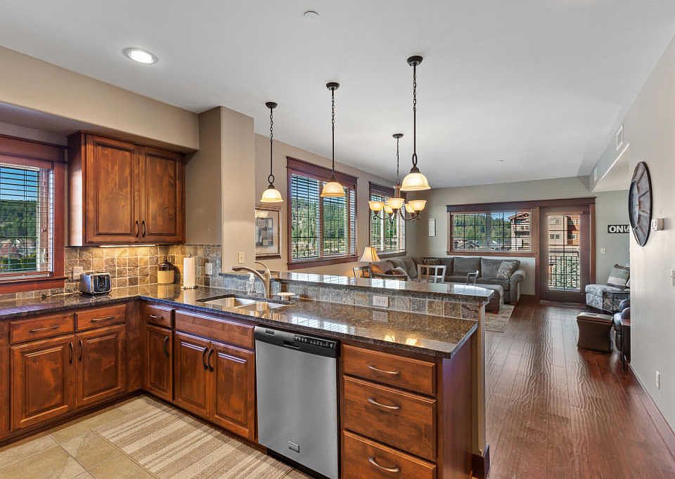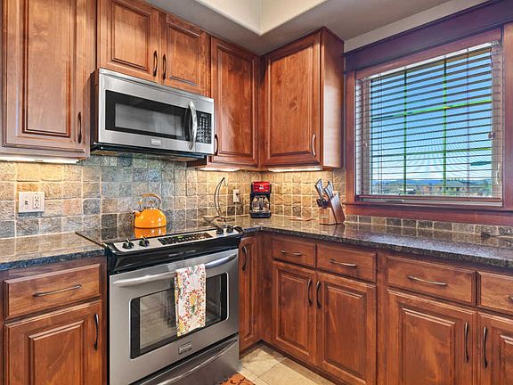 Immaculate 2 bedroom, 2 bath Riverstone Condo. There are only a few condos like this. The condo faces South and has windows onthe South wall that make it much lighter and brighter than most of the units. Fully furnished and equipped as a short-term rental, thisunit has been successfully rented on VRBO and AirBnB. Hardwood floors, granite counters, tile surrounds in bathrooms.