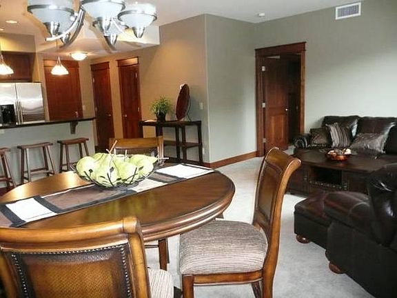 This 3rd level condo is all on one level floor with balcony over -looking Main Street in the desirable Riverstone Village where you can shop, dine, hit the trail for hiking, biking, walking and more. Furnished and turn-key, owner pays for water, sewer & garbage. Ready now. Owner pays for water, sewer & garbage. Furnished with all major appliances and household goods. 2 car garage in the underground parking garage with elevator access.
