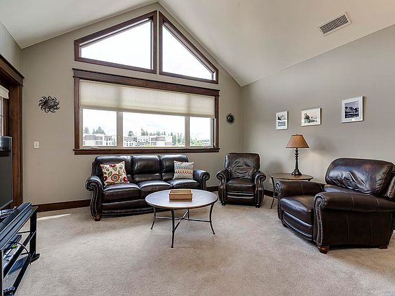 Riverstone Condo w/ Main Street View comes completely furnished and ready for home or income property . Top level- vaulted ceilings, granite, tile and stainless steel upgrade, open floor plan, 3 bedrooms 2 bathrooms. Large master suite w//walk in closet and in suite bath. Private deck. Close to Spokane River, Riverstone Park, Restaurants, Starbucks and shopping. Condo comes with 2 enclosed parking spots + storage that are close to the elevator. Access to community outdoor patio w/barbeque and kitchen. Secured facility. Perfect for Airbnb or FRBO.
