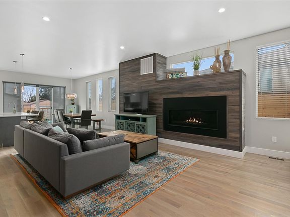 Truly stunning new home with **rare** huge fenced yard just steps from quiet Hallack Park. Experience open concept living at it's best with 4" solid white oak floors and soaring 10 foot ceilings, a gourmet kitchen w/ white quartz countertops, glass tile backsplash and Jennaire Professional Series appliances. Gas fireplace with a custom oak accent wall and a gorgeous floating staircase complete the main level. Upstairs you will find a spacious master suite with a private west-facing deck. Luxury 5 piece master bath complete with separate soaking tub. 3rd floor has a loft space perfect for a theatre room, or private guest suite/Air BnB or VRBO. 4th bedroom and another private bath with wet bar and two separate deck and rooftop spaces ideal for spending all of your mild Denver evenings with panoramic city/park/mountain views. Location X3! - just blocks from Sloan's Lake, Alamo Drafthouse, Tap and Burger, close to Highlands Square, Jefferson Park, Sports Authority Field, and downtown
