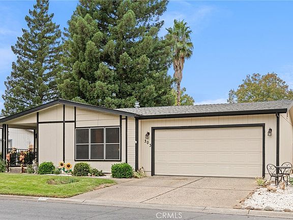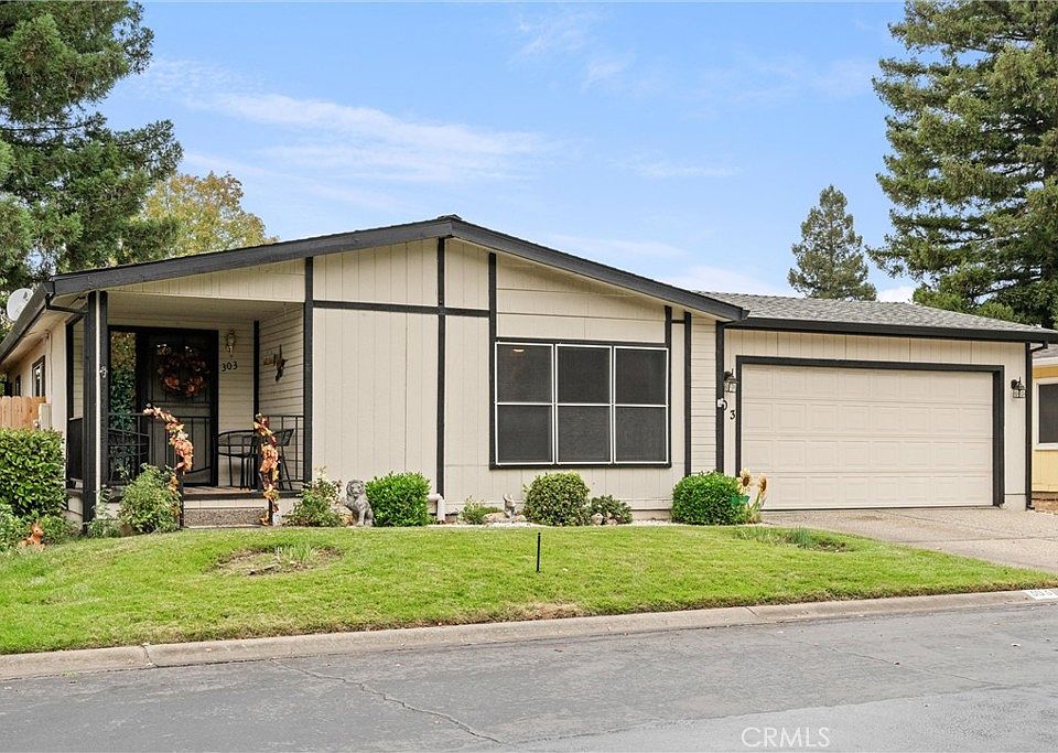 Welcome to this lovely and well maintained double wide mobile home in Chico's favorite gated senior community, Springfield Manor. This move-in ready residence offers beautifully landscaped yard, creating an inviting curb appeal and a peaceful retreat outdoors. Enjoy relaxing or entertaining guests year-round on the spacious covered patio overlooking the private fenced yard.