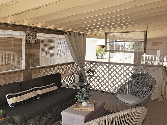 Lower price - Corner Unit, decorated to perfection, 2 bed, 2 bath with a laundry room & a superb patio area. Over 20k in upgrades , custom designed closets, vinyl plank flooring, paint, lighting, faucets, high toilets, sunshades. Updated kitchen & all appliances included. Large storage shed for the hobbyist or just for extra stuff. Carport holds 2 large vehicles. Wood faux blinds in most rooms & updated bathrooms. No yardwork required at all. 3 skylights, 2 ceiling fans & newer appliances. Roof done in 2019. AC/Furnace recently serviced. Pad fee and utilities will run about 806 a month, verify with park. Must be approved by park and pets are allowed. Bring your golf cart, there is room. A must see property. Pine Shadows is an active 55 plus community.