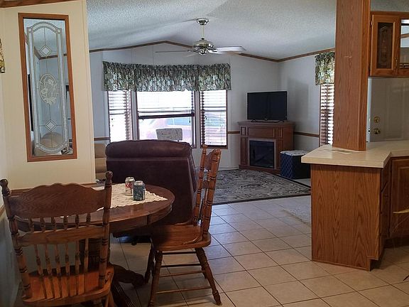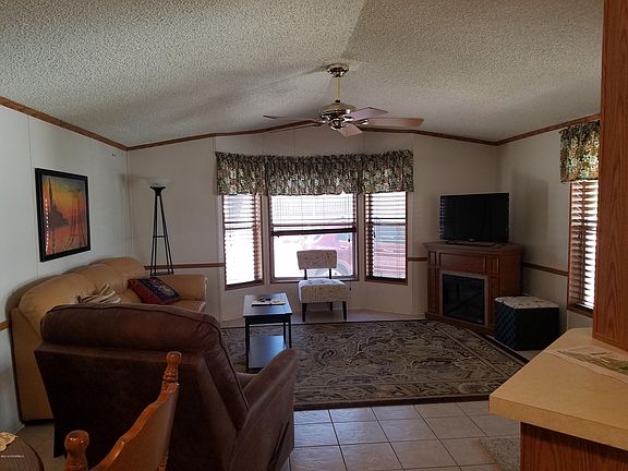 In a 55 plus park with lot rent of 555.71 which includes trash and sewer partially furnished lots of storage walk in shower move in readyLarge side Deck Exterior exterior paint and new skirting Ceiling Fans Large covered drive with carport