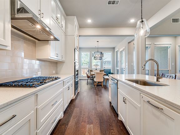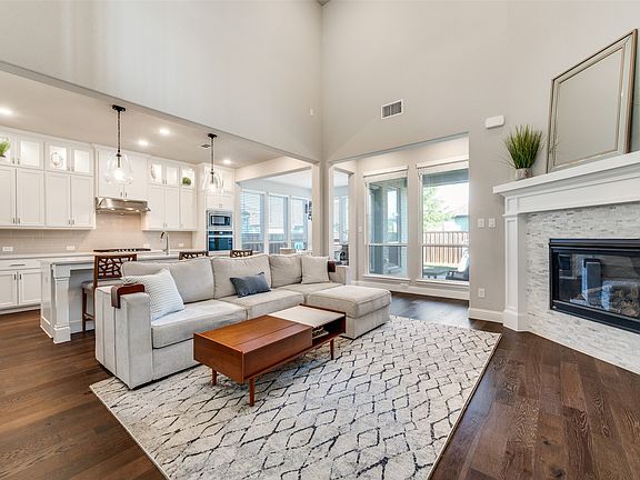 Located in Prosper’s premier Star Trail neighborhood, this beautifully designed home offers spacious living, high-end upgrades, and resort-style amenities, all within top-rated Prosper ISD. Inside, you’ll find soaring ceilings, an open-concept layout, and abundant natural light throughout This home has it all, study with glass doors for privacy, 2nd bedroom downstairs with ensuite. The chef’s kitchen is designed for entertaining, featuring stainless steel appliances, quartz countertops, double oven, gas cooktop, large island with lit upper cabinets . The kitchen opens to a spacious family room with a tile fireplace. The primary suite is a private retreat with a wall of windows. The extended spa-like primary bath features a soaking tub, storage cabinets, double sinks walk-in shower. The primary closet is Texas sized with plenty of storage. The entertainment spaces abound with a media room, large game room or flex room. Plenty of room to store a Golf cart in this 3 car garage. Enjoy the resort-style amenities of Star Trail, including pools, tennis-pickleball courts, parks, walking trails.
