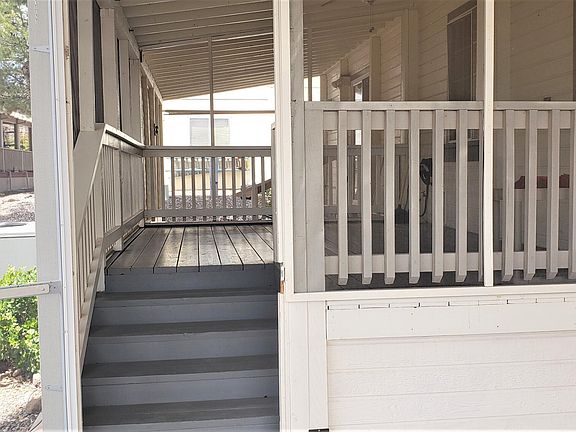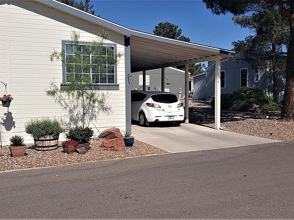 55 Plus Community of Pine Shadows. This home is immaculate with plenty of upgrades and needs nothing. Roof, AC, furnace, flooring, paint all new and home has 2 carports, will fit 3 cars and a seperate area for golf cart. Pine Shadows sits close to a 9 hole golf course with 2 clubhouses, 2 pools and lots of social activities. Close to shopping, grocery stores and medical facility. New dog park just built and home sits in the beautiful Mingus Mountain area. Home is landscaped, has sprinklers, gutters, enclosed screened porch in front with ceiling fan and a patio off main bedroom perfect for a spa. Shed off carport with 2 additional storage cabinets that stay. Very well maintained property and priced to sell fast. Seller leaving area. PS manager to verify all fees