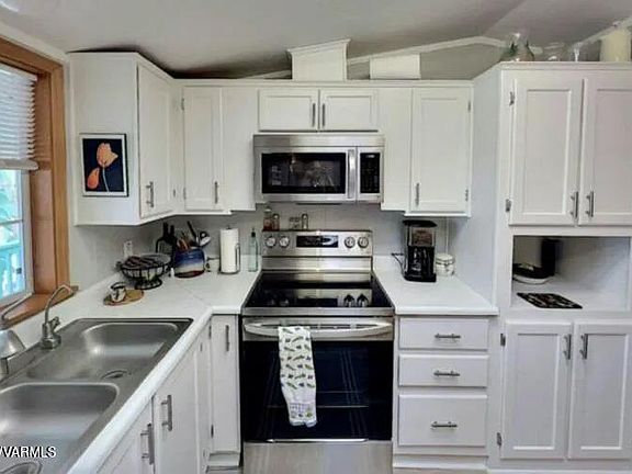 Welcome to this meticulously upgraded 1997 Cavco home, designed with your comfort in mind. This two-bedroom, two-bath retreat showcases a modern transformation, featuring a sleek kitchen with new stainless steel appliances and brand-new flooring throughout. The expanded entry provides a flexible space that can serve as a cozy den or home office, opening up to a private patio—a perfect spot for relaxation or entertaining. With new AC and a thoughtful layout, this home invites you to move in with ease and enjoy peace of mind. Don't miss the chance to make this updated Cavco home yours!