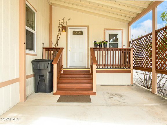 Views of the Red Rocks & Mingus Mountains, 55+ community, Lots of birds & wildlife can be seen from the covered deck, Many new updates in this home: Ceiling fans, vinyl windows, water heater, patio door, stylish Roman Shades, patio door is newer, Bay windows in master bedroom/dining, see the Sedona sunrise & sunsets, view the hot air balloons, Views of the Twinkling stars of Jerome, Newer roof on the shed & home. Custom colors. The shed is 8x8x8. The mobile is 16x20 and 14x20 known as a ''Cutie''. There's room on the right side for more parking if you remove the border rocks. Guest Parking & Mailboxes are close.