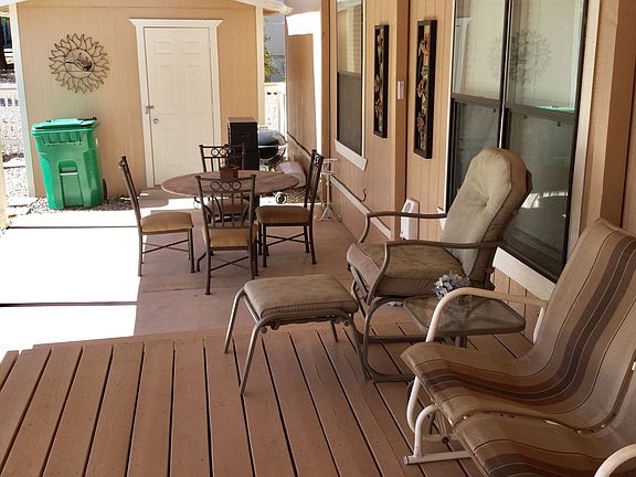 Fantastic open floor plan and a complete and meticulous remodel; you will be amazed at the stunning updates and will enjoy the thorough list of recent improvements. Spacious 1543 Sq.Ft. 2BR/2BA Palm Harbor home plus screened in deck and huge outdoor porch/patio. This is a home perfect for both indoor and outdoor entertaining. It also boasts a roomy fenced in yard perfect for your pet. This is a BEAUTIFUL, MUST-SEE home. Over $40,000 in improvements. NEW LAST YEAR: Roof Awnings Anderson storm/security door NEW IN LAST 3 YEARS: Hot water heater Whole house re-plumbed in 2014 Garbage disposal All faucets/sinks Granite vanity top in second bathrooms High profile commodes in both bathrooms Sunscreens Deck and Fencing Landscape drip/irrigation system Air conditioner Professionally leveled and ducts cleaned 3” baseboards Pergo XP and Allure flooring New lighting throughout Tape/texture walls Interior/exterior paint Lot Rent is $577.29 and includes water, sewer and trash pick-up. You own your home and lease the lot in this great community. All this and more is located in Pine Shadows, a premier 55+ land lease retirement community located in Cottonwood, Arizona. We are located close to Sedona, Jerome and within an hour of Prescott. Nearby facilities include hospitals, transportation, churches as well as quaint shops, wine tasting rooms and great restaurants in Old Town Cottonwood, just a few miles down the road. Our beautiful clubhouse has several amenities, both indoor and outdoor and you will enjoy the large heated indoor pool, spa, fitness room, a library, game room, and a large dining hall. We have a full calendar of activities to enjoy. The nine hole Coyote Trails golf course is immediately adjacent to our community and residents enjoy special rates. Go to mountainvista.mhvillage.com for additional information. ~All prospective buyers must first apply for and be approved for residency by Pine Shadows Management~