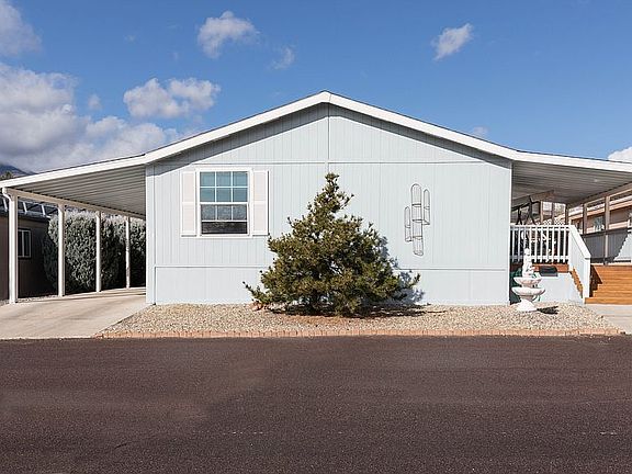 Price Reduced to $149,900 2005 Cavco - Lot #349 – Fully Furnished - 3 Bedrooms - 2 Baths - Low maintenance interior lot - Located in Pine Shadows a 55+ Active Lifestyle Community Features of this home: New roof 2014 New interior paint Spacious kitchen with plenty of kitchen cabinets & counter space Double kitchen sinks Eat in kitchen with breakfast area & step up counter Warranty on all appliances Separate dining room Living room with dormers & custom ceilings Large walk in closets in all rooms Master bedroom & ensuite with garden tub and step in shower Infrared Dry Sauna in Master bedroom 4 piece guest bath Separate laundry room with cabinets Ceiling fans throughout Vinyl & carpet flooring throughout Covered 10’ x 50’ deck with mountain views Covered carport 8.5 x 11.5 shed with electricity ** All prospective buyers must first apply to & be approved for residency. Pine Shadows is a 55 + Adult retirement community located in the foothills of the Mingus Mountains in Cottonwood, Arizona. We are centrally located close to medical facilities, shopping, dining and plenty of outdoor activities. Sedona and Jerome are a short drive away. People in the area enjoy a beautiful drive to Prescott for additional shopping and dining experiences. Old Town Cottonwood offers quaint restaurants, wine-tasting rooms, unique shops, and it is a great way to spend the day with friends and family. Pine Shadows Residents enjoy a full calendar of monthly activities with something for everyone. Monthly lot rent includes water, sewer and weekly trash pick-up, clubhouse, full kitchen, library, billiards, Wii, ping-pong, craft/card room and a large heated indoor pool, spa and exercise room, picnic & bbq area. Our outdoor sports court includes tennis, shuffleboard, pickle ball, bocce ball and horseshoes. Call Lucinda – 916 721-8939 to make an appointment to view this home.
