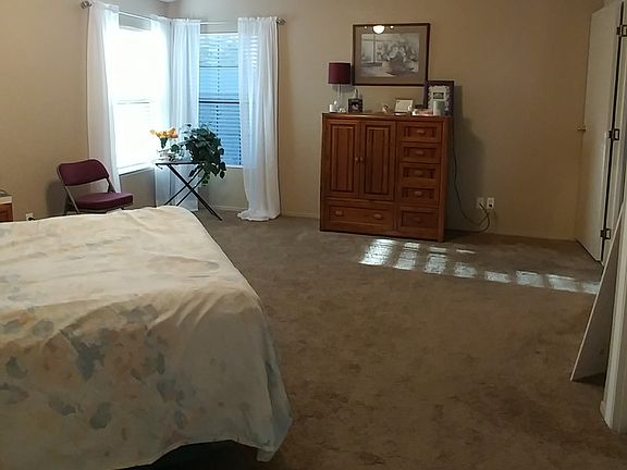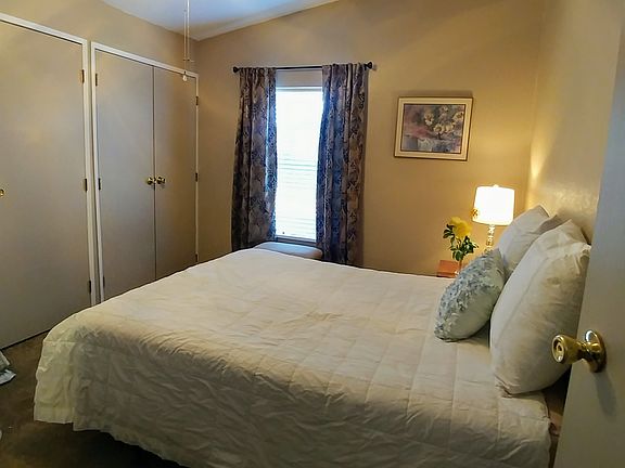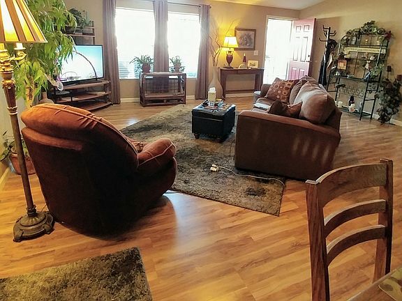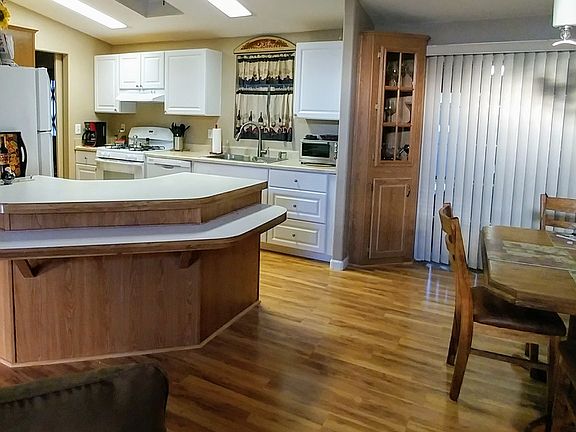 Wonderful 3 Bedroom 2 Bath home that has been updated in 2017 to include fresh modern interior paint colors and exterior paint and skirting, roof and kitchen cabinets. Loads of cabinets. Beautiful Laminate flooring in the kitchen, living, dining and bathrooms. Nice garden tub in the Master bathroom and large walk-in closet. Vaulted ceilings in Kitchen and Living room plus a large Kitchen island. Huge side porch as well as another cozy porch off the back that leads into a nice storage room. Tandem partially enclosed carport. This home is a must see and ready for move-in. This is a 55+ Community. See park Manager for details. Park has Tennis, Community Clubhouse and Pool. Lot rent at $572.19 which includes Trash, Sewer, Rent tax.