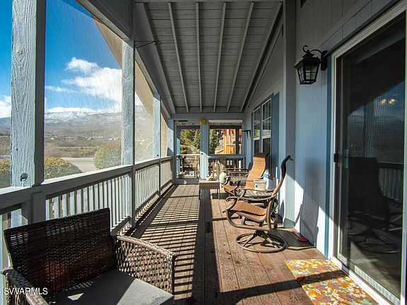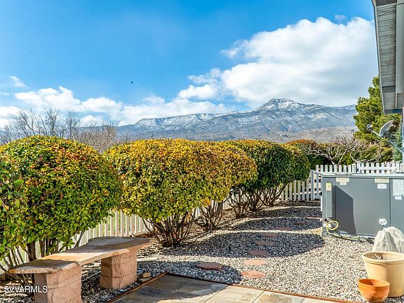 VIEWS, VIEWS, VIEWS, Expansive views of Mingus Mountains & sweeping mountain views in all directions, backs the Arroyo for more privacy, back deck is screened, laminate flooring (bedrooms have newer laminate: Guest Bedrooms installed in 2022, All appliances stay, Large kitchen w/island & lots of cabinets, Solar Tubes, faux wood blinds, near trails leading to the golf course, tandem carport, storage shed has shelving (seller will take some shelving), Firefly yard art & wire sun on front of mobile do not stay, Enjoy outdoor living & barbecue on the stainless grill that stays, beautiful landscape, fenced backyard, Easy living in this turnkey home, Amenities: Community pool & Club house, pickle ball, tennis, and golf course.