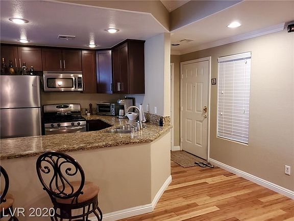 Much Sought after & hard to find 1st floor 3bedroom home w/ 2baths & a deep garage.Nestled in the heart of Green Valley/Henderson. Gorgeous mature tidy landscaping. Secured in a 24-hr guard-gated resort-style community that includes a scenic pool, spa, clubhouse, fitness center, tennis, basketball, sauna & a covered BBQ area for outdoor cooking/dining. Resort Villas is a unique setting, Quite beautiful w/lush landscaped grounds. Swimming pool overlooks the adjacent Wild Horse Golf Club. It only takes 15 mins to Mccarran airport & The Las Vegas Strip. Hoa Fee includes Water-Sewer-Trash.Well Shaded Unit on the Greenbelt so the Unit stays pretty cool from our desert heat.