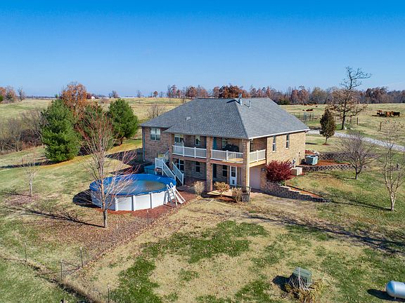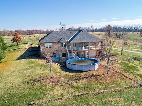 Take in the amazing views and sunsets on the covered back porch of this amazing all brick 4 bed, 3 bath, walk-out basement home on 34 M/L acres. Open and spacious floor plan with all the features! Granite, new carpet, high ceilings, split bedrooms, two living areas, tons of natural light, home generator, John Deere room, above ground pool. YES! It has a shop with a lean-to. 40'x60' with a 15'x60' lean-to. Half concrete floor in the shop, perfect for horses, 200 amp/220-volt separate power supply for all your shop needs. Fenced and crossed fenced land, 3 paddocks around the shop with auto waterers. Awesome horse or cattle property. Come and tour this great property in the heart of the Ozarks!