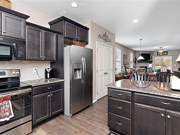 Welcome to this 4 bedroom, 3 bath, 3-car garage, open-concept ranch-style home in the charrming community of Shawnee. This easy-flow floor plan makes everyday living a breeze. Feel the warmth as you are greeted with hardwood floors flowing seemlessly throughtout, a beautiful kitchen complete with pantry, and a cozy fireplace. The partially finished basement provides additional gathering space, a guest suite, and plenty of storage. Relax and unwind on the outdoor covered patio where you can entertain in the privacy of the large fenced-in backyard. Additionally the sprinkler system ensures hassle-free lawn maintenance and lush green grass. And if that's not enough, you can also enjoy a short stroll down to Shawnee Mission Park to participate in even more outdoor activities! Conveniently located for quick highway access, and close proximity to dining and the groceries. Don't miss the chance to call this lovely 5 year young Lambie-built home yours!