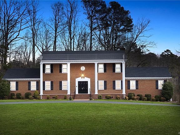 Absolutely stunning custom built brick Colonial style home! This beautiful 3-story offers 5,144 square feet (1330 sf of this is finished basement), 5 bedrooms, 3 full baths, 2 half baths, formal living & dining rooms with beautiful molding and hardwood floors, a chef's worthy kitchen with a stainless steel 5 burner dual oven JennAir gas range and a large extended breakfast room with gas fireplace, a first floor office or informal family room and a HUGE finished walk-out basement with gas fireplace and plumbing for a kitchen or bar. The stately home also features central heating and air, new roof, new windows, new rear deck, first floor master and private bath, open rooms and high ceilings, a 2-car attached garage and a paved circular driveway. There is also a pulldown attic, already floored allowing for tons of storage - all on 5 acres in an exceptionally convenient location; close to Fort Lee, surrounding schools and cities, but quiet and peaceful in a rural setting. Come see this lovely home!