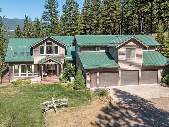 Bordering thousands of acres of Forest Service land, this end of the road home sits on a beautiful tree covered lot with incredible views from the deck and floor to ceiling windows and Cromwell Creek flowing along it's border. This home has a newer roof and deck, a great greenhouse, work shed, two 1000 G propane tanks, irrigation rights, an open feel, and plenty of room for another bedroom and bath in the unfinished basement. Lots of upgrades lately and two gas fireplaces! As a bonus, above the garage is a nice apartment with a separate entrance just perfect for guests or family. There also a generator. The yard has UG sprinklers, and a fenced raised bed area. Lots of thought and love went into this unique hideaway in the beautiful 9 Mile Valley. Please no drive-bys. Listed by John Herring