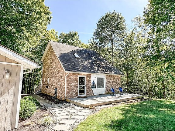 Welcome to your Lake Home! This 3 bedroom 2-bathroom lake home sits on Mill Creek Lake. Pulling up the long driveway of this brick home, you are greeted with a 2 car fully finished detached garage and brick home nestled in the woods. The open concept kitchen, living room and dining room have vaulted ceilings and beautiful finishes. The large master bedroom features a large closet and is just across the hall from the bathroom featuring a large tile shower. Upstairs, the loft area overlooks the downstairs and offers 2 bedrooms and another full bathroom. Off the large back porch, it is a short walk down a gravel path to the private dock with electric. The property also features a pavilion area with ceiling fans, built in outdoor kitchen and water that would be great for hosting days at the lake. This home has been used as an AirBnB home and has produced income for the owners over the last couple years. If you have been looking for a lake home to take your breath away, look no further.