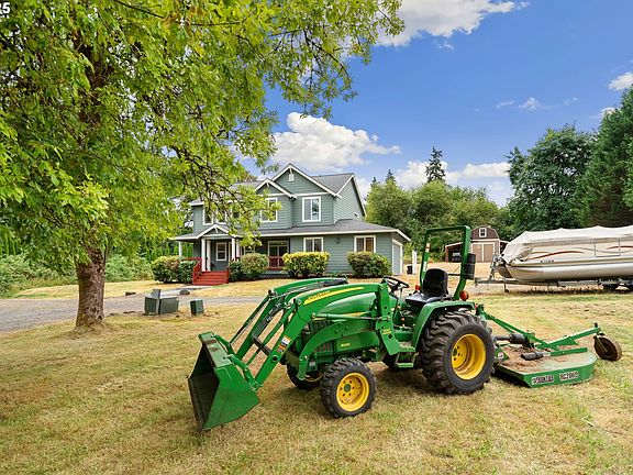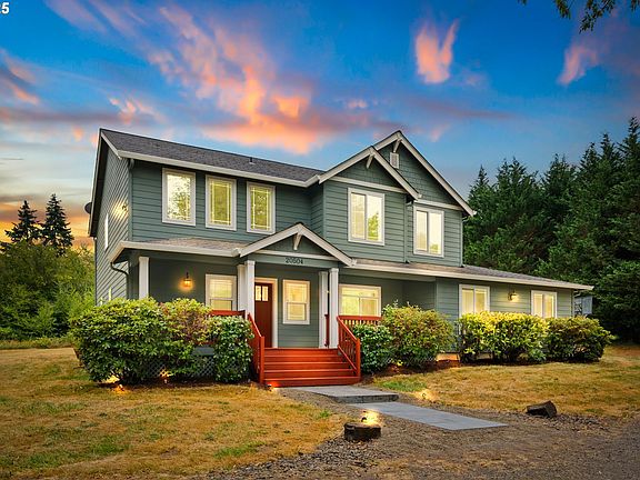 The best of both worlds—peaceful country living and a prime close-in location—await at this freshly painted Craftsman on 5 acres in one of the most convenient Ridgefield settings, just minutes to I-5, I-205, Salmon Creek amenities, and shopping. A wrap-around driveway winds through a grove of apple and pear trees and beneath century-old oaks to a home brimming with charm: hand-scraped walnut hardwoods, a light-filled foyer with railed staircase, a large executive office with custom built-ins, and a kitchen with two-toned shaker cabinetry, granite counters, stainless steel appliances, and a custom island. Upstairs, the soaring-ceiling primary suite is paired with an en-suite, while three additional bedrooms, a large guest bath, and a laundry room with built-in cabinetry provide comfort and function. Recent updates include fresh exterior and porch paint, remodeled baths, upgraded LED lighting, newly built exterior entryway stairs, and the efficiency of well and septic for super-low monthly utilities. Outdoors, enjoy the private covered cedar lined back patio or the iconic front porch, and take advantage of the unique opportunity—per county (buyer to do due diligence)—to build a second residence on the front side of the property, framed by a natural border of the protected wetland. A storage shed with two lean-tos adds practicality, while the property’s location—surrounded by stunning high-end new construction—offers both privacy and prestige. With no HOA to limit your vision, this is a rare Ridgefield gem where beauty, utility, and opportunity meet.