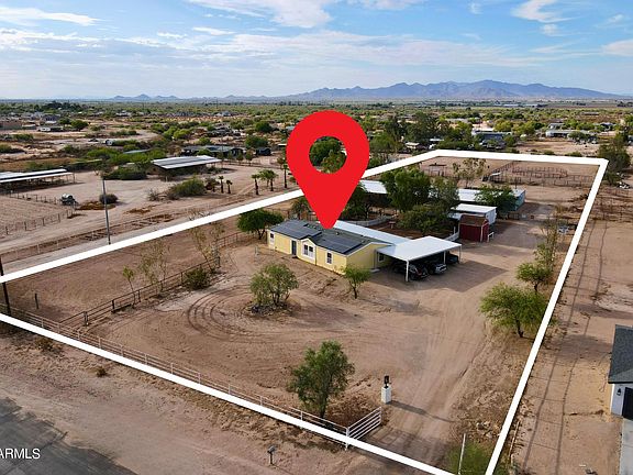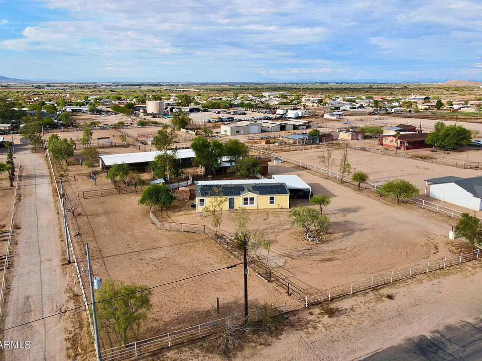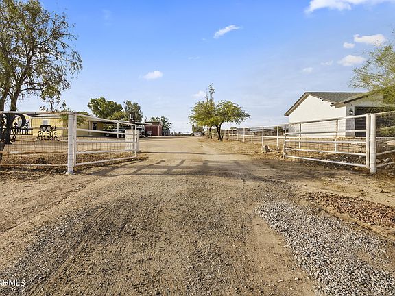 Wow you won't find an opportunity like this with 2.9 acres, this property has so much to offer and can be income producing. Come preview this beautiful property offering an open and spacious 3-bedroom split floor plan recently remodeled with beautiful upgrades in the kitchen, white upper and lower soft close cabinets accented with crown molding and stylish hardware. All appliances will convey. Dining room features farm style shelving and tin paneling on the dining room wall, farmhouse lighting in both kitchen and dining room and plenty of counter space on the beautiful granite countertops. Bonus features include SunPower Solar system free and clear and will convey to buyer. laminated wood flooring throughout, the upgraded GE Profilie All in One Washer/Dryer will convey The GE Profile Washer/Dryer All in One are programmable to your phone. APS Electric has an average of $30/month over 12-month period. 2" wood faux blinds throughout, special rustic features in the main suite bathroom include custom countertop with wash basin, cabinets are accented with tin for that country look. FREE & CLEAR solar system will transfer to buyers. This beautiful equestrian property includes 8 stall mare motels with all the lighting and fans to convey, wash bay set up, private gym with all equipment for workouts include a window unit for cooling and a stand-alone portable AC unit. Custom Conex building made into a workshop and all outbuildings will convey 1 - 12x12 with a loft, 1 - 10x12 custom built shed, split rail fencing with gates open to the entry of this magnificent property that offers white picket fencing around a quaint spot underneath the shade trees near the gardens. Full length back patio is a great place to relax and BBQ or enjoy a fire by the pit outback or watch the magnificent sunrises or colorful sunsets on the side patio built off the conex building. This amazing property offers covered space for equestrienne supplies, shaded areas to offer rental space for RV's and horse enthusiast coming for local events, boarding space and additional covered/shaded areas with an arena and room for additional turn outs or boarding space. So much to offer on this amazing property that can be used or split to add additional homes.