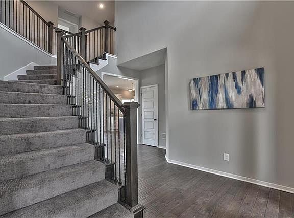 The Harlow V by Prieb Homes now in Woodland Manor. This 5 bedroom, 4 bath home features a spectacular two-story entry! Formal dining room has a pass through to the Kitchen w/an over-sized granite island with apron sink & soft close drawers & doors. The Master Bedroom is set off from the rest of the floor plan for extra privacy. The Master Bathroom has a custom walk-in shower and tiled flooring. The spacious Master Closet offers a pass-thru to the Laundry Room for added convenience. This beautiful daylight lot backs to greenspace which is designated to be a City of Olathe park. Photos are of a previously Harlow V model.