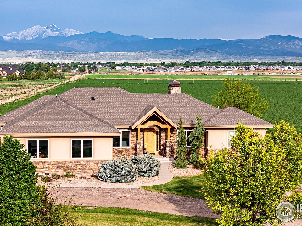 This stunning 77.09-acre property in Berthoud offers a custom 5-bed, 5-bath home with breathtaking mountain views. Featuring expansive agricultural potential, water rights from multiple ditches, and state-of-the-art irrigation, it's perfect for farming or development alike. With multiple outbuildings, greenhouses, and fertile land, this property is a rare opportunity for investors, farmers, or developers looking to expand operations.