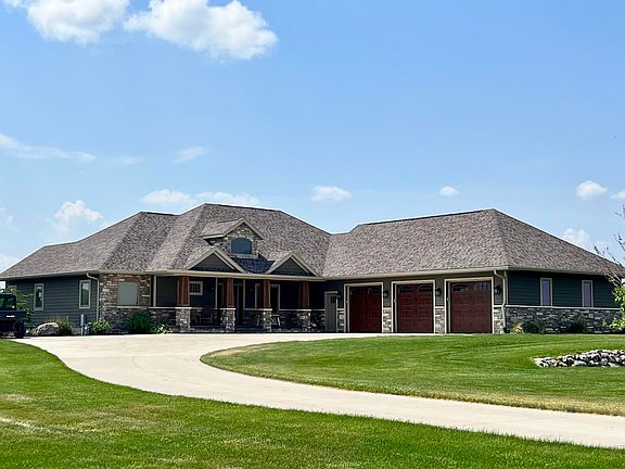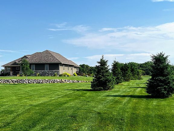 Introducing an extraordinary opportunity to own a remarkable 4-bedroom, 3.5-bath executive home on a serene 4.8-acre lot in the prestigious River Bend Estates. Nestled alongside the picturesque Ocheyedan River, this rustic ranch walkout residence offers an open floor plan and breathtaking natural views. The moment you step into the grand Great Room, you'll be captivated by the soaring 18-foot vaulted ceilings adorned with rustic cedar beams. Bathed in natural light from the expansive triple-paned Pella windows, this space provides a seamless connection to the surrounding wildlife and awe-inspiring landscapes. Cozy up next to any of the three fireplaces, creating the perfect ambiance for winter evenings. Designed with culinary enthusiasts in mind, the custom kitchen is a haven of functionality and elegance. Impeccable knotty alder woodwork and custom pine and knotty alder cabinets adorn the space, while exquisite granite countertops add a touch of timeless luxury. From preparing culinary delights to hosting memorable gatherings, this kitchen exceeds expectations. The master suite offers a serene retreat with its spacious layout, two walk-in closets, and convenient access from the Great Room. Indulge in the luxurious master bathroom, featuring heated floors, a double sink vanity, and a generously sized walk-in shower for two. Unwind in the oversized soaking tub, immersing yourself in pure relaxation after a long day. Descending to the walkout basement, you'll discover a second living room complete with another inviting fireplace. Whether enjoying cozy movie nights or hosting intimate gatherings, this space exudes warmth and comfort. The basement accommodates three additional bedrooms, including a guest bedroom with an adjacent full bathroom. Two bedrooms share a well-appointed Jack and Jill bathroom, complete with sliding pocket doors for enhanced privacy. Embrace the seamless transition between indoor and outdoor living through the oversized sliding doors, leading you to a sprawling patio. This outdoor oasis sets the stage for unforgettable entertainment while overlooking the meticulously maintained irrigated lawn. Adjacent to the river, you can savor warm summer nights in this enchanting setting. A utility shed discreetly houses your lawn mower, while a dedicated dog kennel ensures your furry friends are well-cared for. In summary, this remarkable executive home combines impeccable design, superior craftsmanship, and a truly idyllic natural setting.