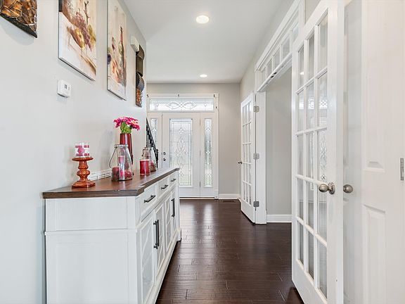 On hold until Monday 5/13. Check out this brick home on a corner lot with 3/4 of an acre! NO HOA! Property has an additional brick DETACHED 2 car garage and tons of parking space! Wonderful community with wide streets for walking, and lots of mature landscaping. This nearly 3500 sf home has THREE entertaining spaces - a formal living room with french doors, a family room (with a double-sided fireplace between them), PLUS a bonus room over the garage. Upstairs bathroom has a LAUNDRY CHUTE down to the laundry room. No carpet in the whole house! There are four bedrooms upstairs, with separate vanities in the primary master ensuite bathroom. Primary bedroom is gigantic with a separate sitting area - great for a nursery, gym, or office space. Outside you'll find a covered patio with a level backyard - perfect for a pool! FIBER internet is in place in the neighborhood. Layout attached to listing.