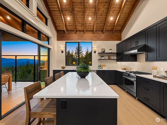 A true master piece from Trailside Homes, homesite 27, The Pioneer plan designed by McCullough Architects to cater to your discerning taste, this completed residence is a contemporary treehouse haven. In the living room enjoy a bird’s-eye view of surrounding mt’s, w/vaulted ceilings for grandeur & a gas fireplace for cozy appeal. The open layout caters towards an entertaining kitchen to anchor memories made here. Indoor/outdoor opportunity abounds w/a covered deck on the main & lower-level patio space (avia lower-level bonus room).Primary w/5-piece bath, EV charger, 2 car gar. Access to the future Skyline Ridge lodge w/ pool, spa, & gathering spaces designed for year-round use. 230 acres of open space, dedicated hiking+biking trails!!