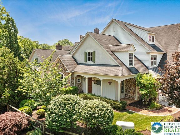 Welcome to Stever Mills—a unique enclave of upscale carriage homes just minutes from Saucon Valley Country Club and Lehigh University. This custom-built residence is rich in architectural detail, featuring extensive millwork, transom windows, crown molding, and gleaming hardwood floors throughout. The gourmet kitchen boasts a wood-top island, built-in appliances, and flows seamlessly into the open dining area and dramatic great room with a floor-to-ceiling stone fireplace. French doors lead to a spectacular sunroom with brick flooring and a stone accent wall—perfect for year-round enjoyment. A richly finished office (originally the dining room) with custom built-ins and barn door adds function and charm. The first-floor primary suite offers luxury and privacy, complete with spa-like bath and generous closet space. Upstairs you'll find spacious secondary bedrooms and beautifully updated baths. The finished basement is a showstopper—featuring a home gym, sauna, rec space, and stylish full bath. Bonus rooms, walk-in laundry, equipped for an elevator and a lush private outdoor space add to the appeal. Set in a coveted location near fine dining, shopping, and major routes, this home delivers timeless elegance and modern comfort in one stunning package. *BUY WITH CONFIDENCE—PRE-LISTING HOME INSPECTION AVAILABLE * 3D MATTERPORT W/ FLOOR PLAN AVAILABLE, TOO*