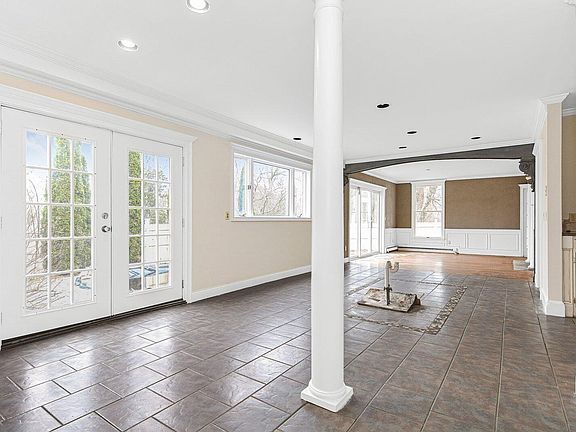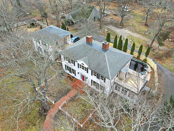 Classic white colonial estate on a secluded hill boasting 7 acres of land and a dreamy horse stable. Featuring an iron gate leading you to a main front entrance grand foyer with a one of a kind staircase that leads to 4 bedrooms including a primary with en-suite. Traditional dining room, living room and study with built ins. Also a light filled 4 season sun room overlooking an outdoor space with in-ground pool. This property includes a 1bed /1bath in-law space with separate entrance. Home has an abundance of potential to become a multi-million dollar estate with a buyer willing to make an investment on the work that needs to be done to bring this house back to its original glory.