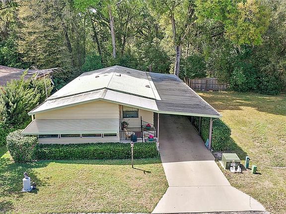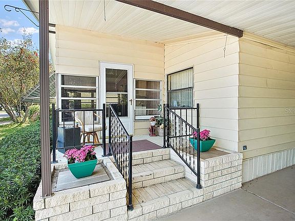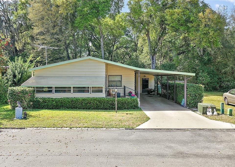 Own your own land and don't pay rent! Welcome to Oakridge 55+ resort! As soon as you pull in you'll be greeted by a heated community pool, clubhouse with library and billiards along with well maintained neighbors! Located at the dead end of a quiet street, this well maintained home is one of the best, if not the best location in the park! Walking in you will be welcomed by a large enclosed Florida room that opens up through sliding glass doors into your living space. Once inside, you will feel the spacious warmth of vaulted ceilings and a large open flex space for a living area, open to your kitchen and dining areas. A large master suite sits just behind this equipped with a large walk in closet, his and her sinks, and a separate tub and walk in shower for your convenience. A second bedroom with plenty of room and an additional office also lay to the rear of the plan with guest bath and storage. Outside, you have a large storage shed with washer dryer hook up and additional garden storage to the rear. Several additional pluses include, new HVAC in 2013 with 3 years of transferrable warranty remaining, recently recoated roof (2018) with Anchor Elastomeric Sealant, dead end location with no rear or Northerly neighbors, Palm Harbor model with upgraded 2x6 construction, no flood zone to worry about, added gutters, and a new range! Property is conveniently located to HWY 27 / 441, I-75, the Villages, and LRMC just moments away. Come take a look today while this home lasts!