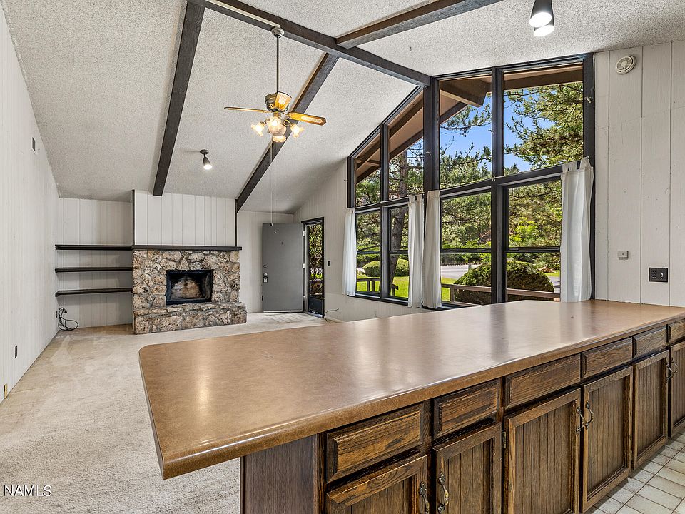 Creativity welcome for updating this single level 2 bedroom, 1 bathroom townhome in Continental Country Club. Amazing vaulted ceilings and a cozy wood burning fireplace make this open living concept so inviting. With some new flooring, new paint, popcorn ceiling removal you will have the most delightful home in the neighborhood. Relax sitting on the updated deck and view the golf course. Walk a few steps to enjoy the amenities Continental Country Club has to offer at Bear Paw with the kiddie pools as well as dining at the Oakmont, pickleball and tennis courts plus lap pool. Come today to tour this great townhome with potential galore!