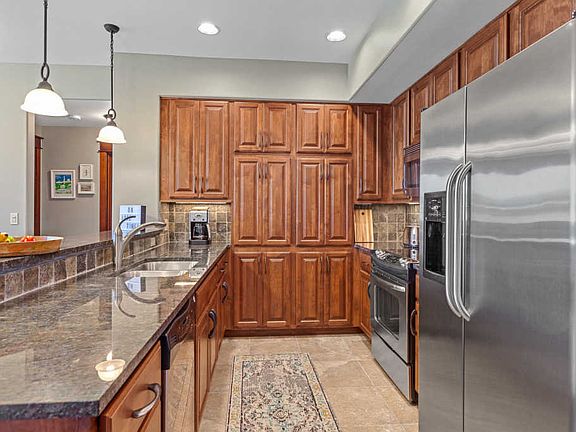 Immaculately maintained 2 bedroom, 2 bath Riverstone Condo on the North side of the building, Granite counters and dark wood cabinets. Condo has only been used in the summertime by the current owners and has not been rented out. Washer & Dryer and side by side, not stacked, Unit has a great location, close to both the elevators and the common patio area. 2 parking spots in the lower level garage and an individual storage room in front of one of the parking places.
