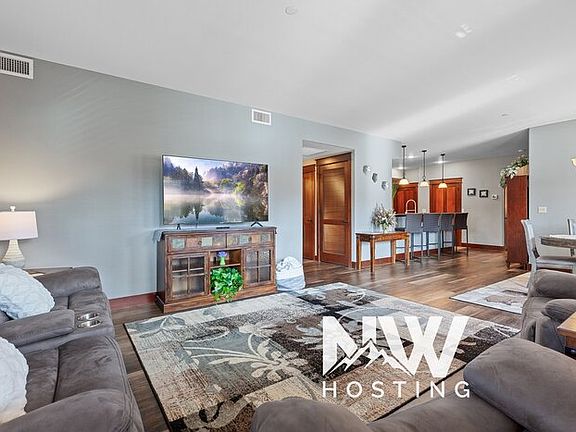 This property is a corporate rental. Please note that the monthly rental price for this property is dynamic and subject to seasonal adjustments. For an accurate quote, provide us with your intended move-in and move-out dates. Welcome to our stunning 3-bedroom, 2-bathroom Riverstone Condo, perfectly situated in a corner unit with a picturesque wrap-around patio offering breathtaking views of the surrounding landscape. Located conveniently above local shops, you\'ll have easy access to everything you need for a delightful getaway. Step inside to discover a modern kitchen, fully equipped with state-of-the-art appliances and all the essentials for preparing delicious meals. The spacious living area is adorned with contemporary furnishings, creating a cozy atmosphere for relaxation and entertainment. Retreat to the large primary guest suite, featuring an ensuite bathroom complete with a luxurious soaker tub and a convenient walk-in closet, providing ample space for your belongings. The Space: Enter to the Kitchen with island seating for 4 To the left Guest room #2 - Queen bed, flat screen TV, electric fireplace Primary Guest Room - King bed, flat screen TV, electric fireplace, ensuite bathroom with soaking tub, standing shower, and walk in closet To the right Dining area with table and chairs for 4 Living room with flat screen TV Laundry area with stacking Samsung washer and dryer Guest room #3 - King Bed, flat screen TV Guest Bathroom - Standing shower only. Have a large group? We can accommodate with multiple condos in the district! Ask us for details Take a leisurely stroll to the nearby river and immerse yourself in the tranquility of nature or gather with friends and family at the community BBQ area, perfect for hosting memorable gatherings and enjoying the company of loved ones. Whether you\'re seeking adventure or relaxation, our Riverstone Condo offers the perfect blend of comfort and convenience for your next vacation. Book now and experience the ultimate getaway in style! In the event of a canceled reservation, the client acknowledges and agrees to pay a credit card processing cancellation fee equivalent to 4% of the total reservation amount. This fee will be charged to the client s credit card used for the initial booking and will be deducted from any refund issued. Contact us to schedule a showing.
