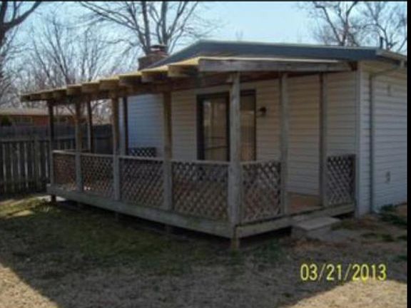 3 bedroom 1 1/2 bath features central heat and air, carpeting and linoleum floors. Electric range, dishwasher, washer and dryer hookups, ceiling fans, dining area, living room and den. Covered deck, privacy fence, 2 car detached garage and storage shed. Total square footage is 1175.
