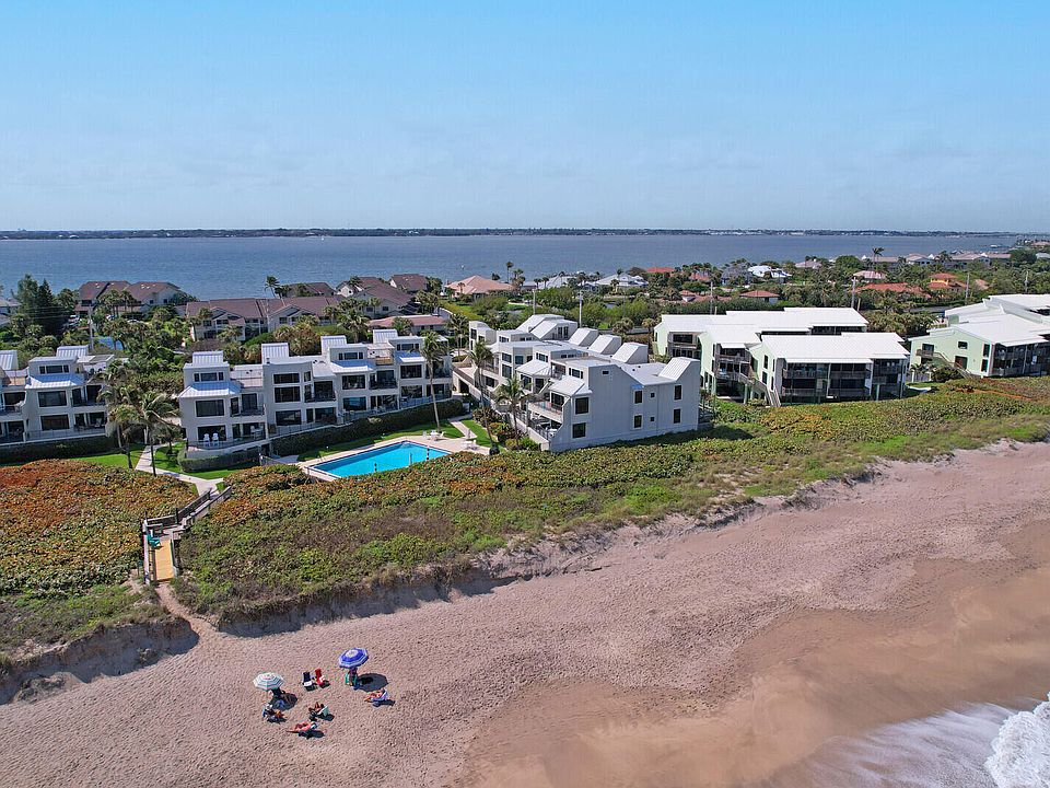 Wake up to breathtaking sunrises over the ocean and wind down with stunning sunsets over the river-all from your private expansive rooftop deck, featuring new composite decking. The beautiful 2 story, beachfront condo offers a large main bedroom, guest room, and bonus loft with 1/2 bath. Step inside to find an elegantly remodeled kitchen with new Kitchen-aid stainless steel appliances, induction stovetop, high end cabinetry, eat-in nook, & counter with seating. The open concept living area boasts new LVP flooring, while the hallways and bathrooms showcase timeless travertine. Custom closets throughout with plenty of storage. Maritimes community offers private beach access, 2 heated pools, pickleball/ tennis court, beach on river side to launch kayaks and paddle boards, beach chair storage