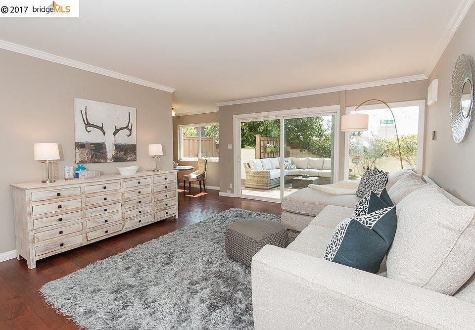 Stunning ground floor unit with beautiful landscaped YARD! Light and bright! Engineered wood floors and crown molding all speak to the care of this home. Add the updated kitchen with the tin backslash, stainless steel refrigerator and new dishwasher.....this home is move-in-ready! Minutes to schools, beach, shops, and lagoon access. This will not last!
