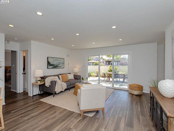Turnkey 1BR/1BA condo with a south shore Alameda location that can't be beat! Situated near Rittler Park, all the amenities at South Shore Center and blocks from the beach, this updated, single-level home includes a living/family room, a newer kitchen and bathroom, and an exceptionally large, private, street level patio and lush garden for a seamless indoor-outdoor lifestyle. Patio has its own side gate and is large enough for both lounging and dining and great for buyers with pets! Details include attractive LVP flooring, abundant natural light, new light fixtures, granite kitchen + bath counters, dual-pane windows and a freshly painted interior. HOA pool and dedicated covered parking space + additional storage. Easy access to downtown Park St shopping and dining, Washington Park + dog park and Alameda beach and the shoreline. Ideal for first-time home buyers, a homeowner wishing to downsize, or those seeking to enter the highly competitive Bay Area/East Bay real estate market.