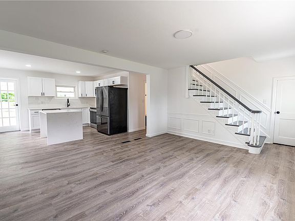 Welcome to this fully renovated home situated on a spacious 8,755 sq ft lot. Featuring high-end finishes throughout. This residence boasts 4 bedrooms and 2 newly remodeled full bathrooms. As you enter, you'll be greeted by an open-concept living, dining, and kitchen area, complete with an eat-in waterfall island, top-quality new cabinetry, and countertops. The brand-new HVAC system ensures your comfort year-round. The expansive backyard is perfect for entertaining guests, offering two covered patio areas, one of which is fenced in. The master bedroom features a walk-out balcony overlooking the patio and driveway area. Additionally, the property includes a detached garage. This contemporary home also offers a huge unfinished basement, providing endless possibilities. Don't miss the opportunity to make this your dream home!