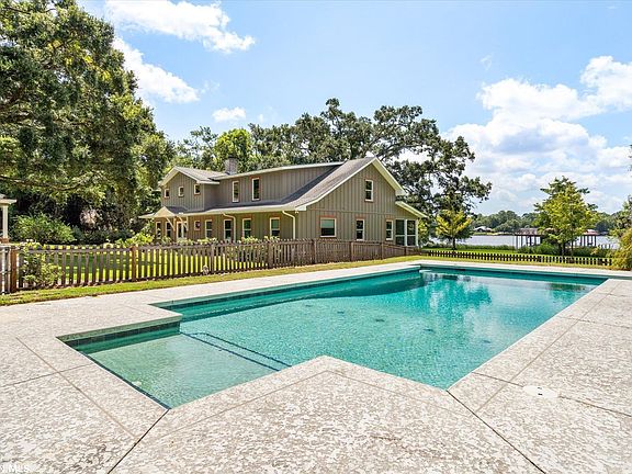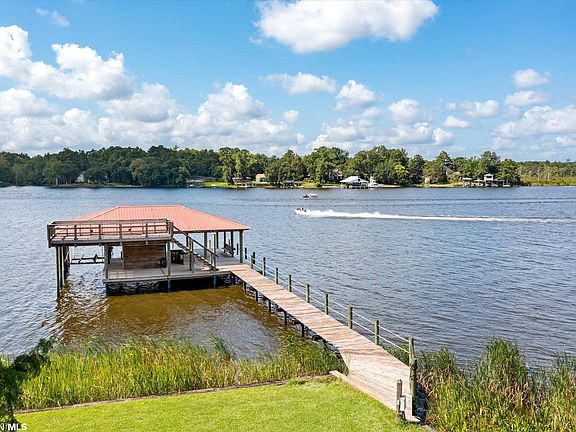 DREAM HOME living at its Best! Expect to be impressed the minute you walk in this one-of-a-kind 2010 remodeled home located on wide part of Dog River. Nestled on 5 acres w/ 200' of unobstructed river front views, home is perfect for entertaining & 'Stay-cations'. Enjoy time relaxing on the 54'x12' screened in porch w/ Cumaro wood floors or on the 1,800sq.ft. dock w/ bar area, two boat slips & storage. Dock has 2nd floor platform perfect for sunbathing or watching the sunrise & sunsets. You’ll love the Gourmet Chef's Kitchen w/open concept dining area +breakfast bar. Kitchen features include: stainless steel counters, Wolf appliances (6 burner gas cooktop w/grill, hood & dbl.ovens), sep. Subzero refrigerator & freezer, ice maker, microwave, Bosch dishwasher & abundant wood cabinets w/ pull out drawers. Enjoy watching TV in adjoining keeping room w/full wall of bookshelves, sliding wood doors to hide TV that will remain & a fireplace. Beautiful hardwood floors in the 22'x27' den w/fireplace, 27'2'x 6'11' living rm. & downstairs bedrooms, split brick in kitchen, tile in bathrooms & carpeting upstairs. Main level master suite with river view, spa bathroom w/jetted tub, glass shower, dbl vanities, medicine cabinets, linen closet & oversized walk-in closet. Step upstairs to 3 additional bedrooms w/ walk-in closets +bonus room/theatre center w/ TV., sep. office area w/ built in bookcases & a laundry shoot to first floor laundry closet. Additional amenities: *Dbl. carport w/ attached 1,200sq. ft. workshop +full bath.*20'x30' Saltwater 35,000 gallon pool (New pool pump 21).*50' Boat/RV carport w/ 50 amp hook up/dumping station.*Well for sprinkler system (New pump 8/23).*Two Rinnai tankless hot water heaters. (One New 8/23).*Two Rheem HVAC units- (New downstairs unit 5/22).*New LED can lights (8/23).*Tree house.*Over 200 types of 50 year old camellias & azaleas! Turnkey/Move-in ready. All updates per seller. Listing co. makes no representation as to accuracy of sq. ft.