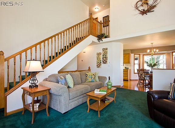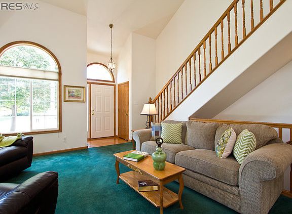 BRAND NEW CARPET THROUGHOUT! Relax on the cov. back patio W/hot tub & backing to greenbelt. Beautiful 5 bedrm home w/main floor master. Upstairs includes 3 bedrms, or one could be an office w/a deck to enjoy great mountain views. Excellent condition W/Rich wood finishes including flooring in kit, din area, & foyer. Finished bsmt includes a family room, bedroom, and plenty of storage space. Oversized 2 car garage. Cul-de-sac location with nearby trail to Big Thompson River and city trails.