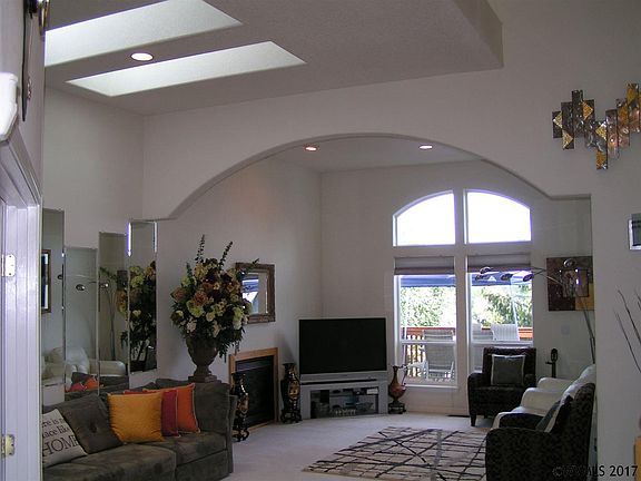 Elite custom home, hardwood entry, kitchen and family room, den, 4th bedroom 12x13, formal living with soaring ceilings, skylights, MBR with jetted tub and walk in closet, beautiful setting with territorial views. Separate entrance to lower level complete with bathroom, laundry, kitchenette, heating and air already there. Possible dual living (buyer to do own due diligence). Oversize 3 car garage, storage,Heat pump elect or gas, central air. Beautiful landscaped yard with waterfall and koi pond, sprinklers.