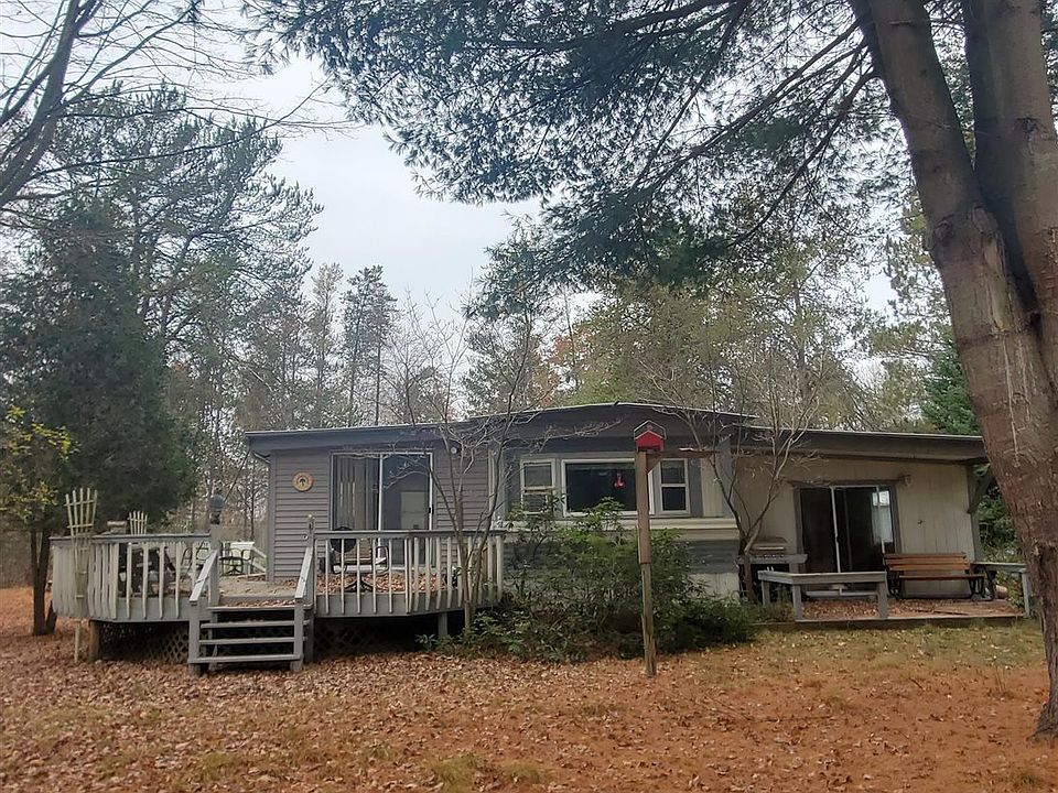 Very pretty setting on this all most 3 acre parcel, 3 bedroom 1.5 bath mobile home with 2 additions and a wrap around deck. 24x36 Garage and a 12X28 storage. Drive your ORV's to the state land, enjoy Wixom Lake once the water comes back. Great recreation area.