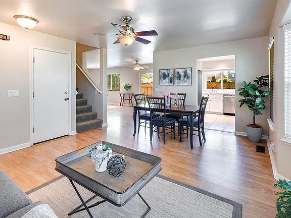 Well cared for 4 bed/2.5 bath home, located in Santa Rosa's Petaluma Hill Estates. Exceptional floor-plan, with almost 1,600 sq. ft of living space and lots of natural light throughout. The oversized master suite features vaulted ceilings, a ceiling fan. Two of the bedrooms include convenient nooks, which are ideal as desk space or additional storage. The formal living room is an optimal location for entertaining and relaxing and provides maximum versatility for different furniture styles. The dine-in kitchen includes stainless-steel appliances, plenty of cabinet space, and views of the sunny backyard. The family room features a gas fireplace and provides direct slider access to the rear patio. The spacious backyard has been upgraded with a handsome rock wall, synthetic turf, gazebo and a covered patio area with a hot tub. Set upon a fully landscaped lot, this home includes leased solar panels, dual pane windows, finished garage walls and more!