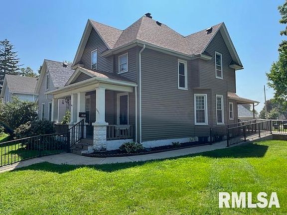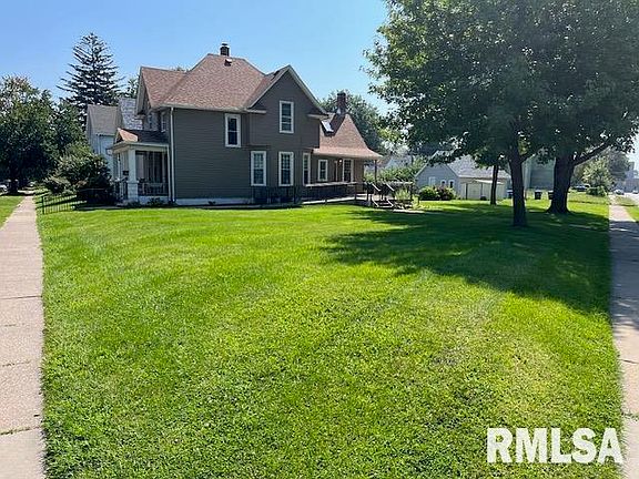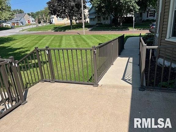 Huge corner lot with a lot of yard space! Handicapped accessible with a concrete ramp leads to a 17 x 11 patio and main floor entry to the kitchen. Large eat-in kitchen with a pantry, half bath/laundry room off the kitchen and a back staircase to the upper level. Huge formal dining room, main floor bedroom and a spacious living room, ceiling fan in the living room does not work but the light does. Lots of natural woodwork on the main floor. 2 bedrooms upstairs with a large full bathroom and a walk-in attic storage space which could be finished for more living space. Nice front porch with a porch swing looking over a well landscaped yard. Property is being sold "as is" with no warranties on the appliances that are included.