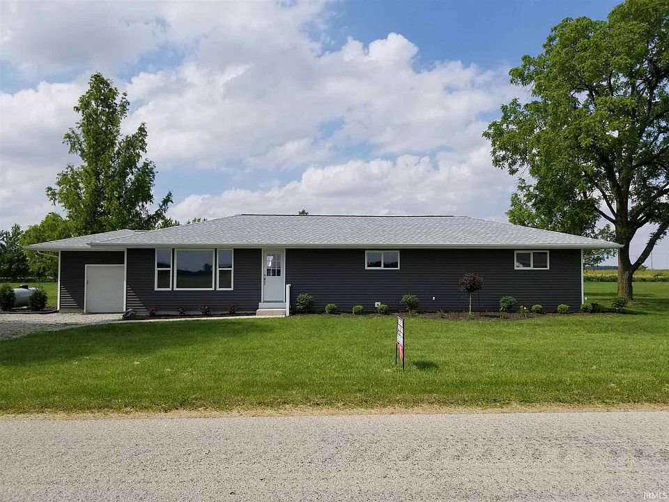 This lovely home is just one mile from Southern Wells High School. With 4.0 acres and 1392 Square feet of living space, this can be your piece of country! The front door brings you into the spacious living room and breezeway that both have large windows. The breezeway leads you to a nice size deck with a beautiful view of the backyard. The kitchen has new cabinets and appliances. This could possibly be your favorite room in the home. The master bedroom along with the other two bedrooms are of very nice size with ample closet space. The utility room was designed to accommodate a washer, dryer and freezer. Entry to the utility room from the one car garage makes bringing groceries into the home a snap. The backyard sports a newly roofed and sided storage building with workshop. There are new floor coverings throughout the entire home. The roof is new with a complete tear off. Other updates include new siding, windows, plumbing, high efficiency furnace, air-conditioner, well pump, pressure tank, water softener, and landscaping. Septic tank was pumped and passed inspection. This is a low maintenance home that is close to Southern Wells School. There is ample space for gardens and livestock.