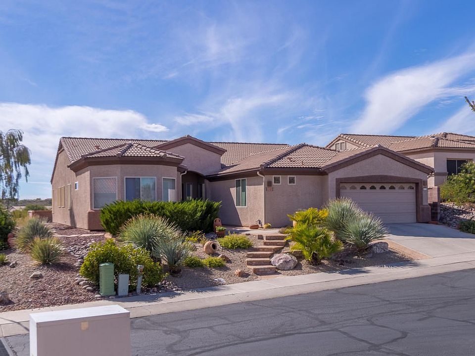 Beautiful home with mountain views located in a gated community. This home has 4 bedrooms, 3 1/2 bathrooms, office, split floor plan, separate living/dining room and family room, laundry room, large kitchen with all appliances, central vacuum system, water softener, two car garage and covered patio. Fully landscaped front and back yards. This well-maintained home is a must see! Some of the furnishings are available on a separate bill of sale.