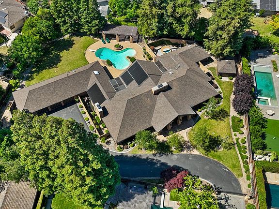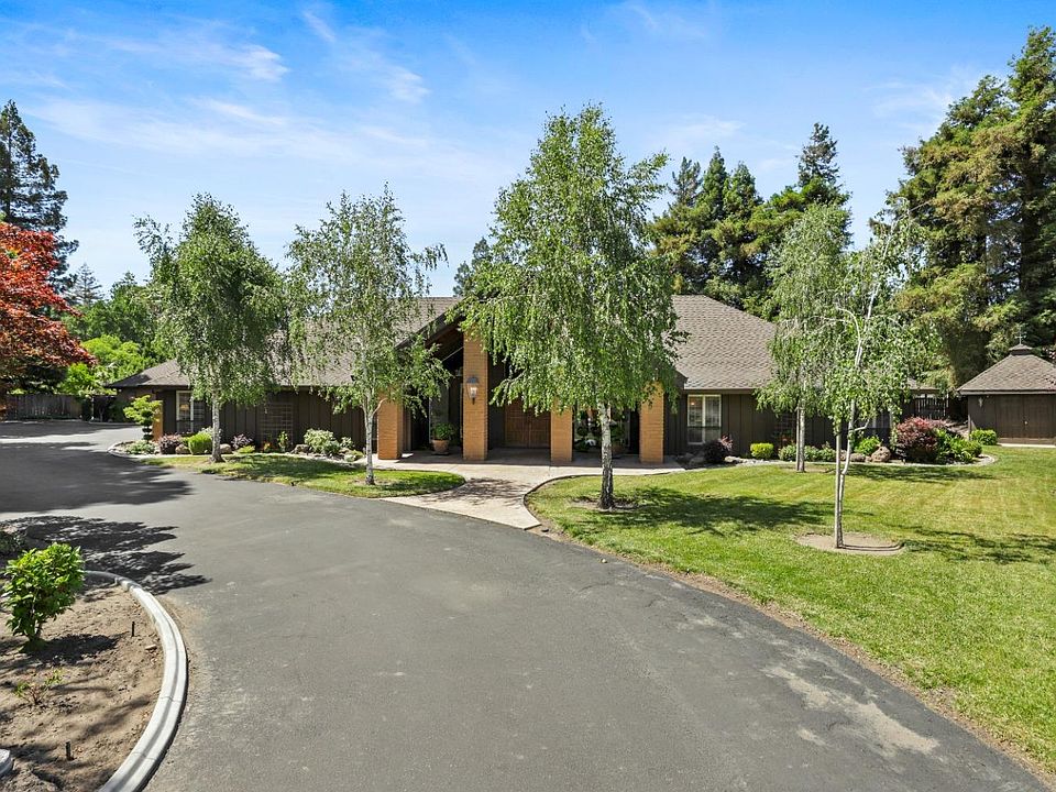 Drive through a private gate & over a picturesque bridge into a private & secluded neighborhood of just 6 executive homes! Welcome to this stunning, sprawling, single story ranch home that offers extraordinary family space in a hugely desirable setting! Built by a builder for his own family, this home has lg expansive rooms ideal for lg scale entertaining or fabulous, intimate space for luxurious family living. Spectacular soaring, open beamed ceilings greet you as you enter into the lg liv rm w a floor to ceiling brick fireplace & stunning windows overlooking the fabulous rear gardens, pool & expansive patio areas. Spacious, desirable master suite has an enviable sitting area & bright doors & lg picture windows that open onto a private deck with a jacuzzi. 3 other lg bedrooms, 2 with great built in desks. Huge kitchen w great counter & cabinet space & an informal eating area overlooking a private pond w a waterfall. Don't miss this once in a lifetime home in an unparalleled setting!