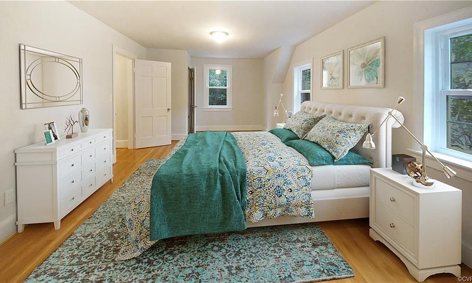 This is a BEAUTIFUL Williamsburg (or downtown RVA) style cape cod with 4 bedrooms and 2.5 baths. Even though the basement is unfinished, it has great ceiling height, a half bath, and walk out access for a workshop, craft room, man cave, play room, etc. This renovated stunner sports so much new, you have to come see it to believe it. The completely refinished plank hardwood and walnut wood dowel wood floors are simply gorgeous in both their appearance and shine. The Kitchen is brand new with 42" upper cabinets for all kinds of storage and the new stainless steel appliances look wonderful as well. Brand new windows with built in wood valances to compliment the colonial style that has been preserved for long lasting beauty. Heavy wood trim throughout and ample closet space that is well laid out for maximum storage in each room. @ fireplaces for ambiance. The brick exterior with brand new vinyl windows, has slate roof with 6" gutters and downspouts for extreme water/weather protection. Brand new HVAC unit and water heater and electric panel with 200 amp upgrade. Both the basement and the crawl space is conditioned space.