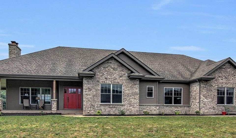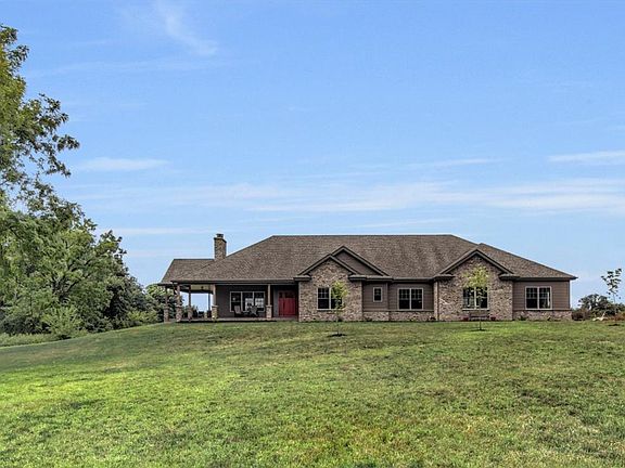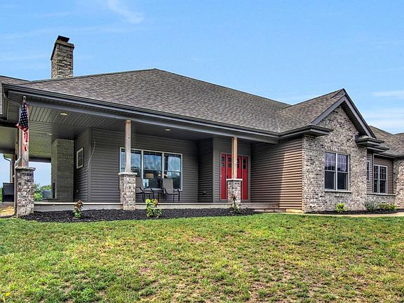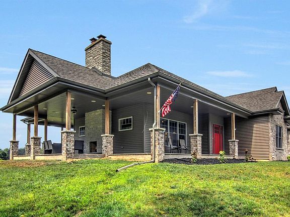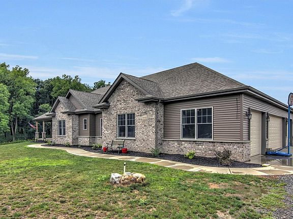 CUSTOM BUILD BY ARMANI- 4 BD/3.5 BATH RANCH ON 5 ACRES! Inviting wrap around porch features outdoor stone fireplace! Open Concept Great Room with wood burning Fireplace! Large beautiful kitchen boasts HUGE granite island with all appliances included! 8FT INTERIOR DOORS THROUGHOUT HOME! Master features spa like master bath with enormous walk-in tiled shower! 2nd bedrm has private full bath-quartz sink top! 3rd and 4th bdrm are large & full bath/double granite sinks centrally located. Sunroom off kitchen has loads of natural light! Custom Mud room area is a dream for organization! RADIANT HEAT FLOORS IN THE UNFINISHED BASEMENT/ROUGH IN FOR FUTURE BATH-EGRESS WINDOW & 9FT CEILINGS for the ultimate space to make your own! 4 car garage has separate staircase into basement! Wood fueled furnace heats entire home economically or propane tank on site if you prefer! The rolling 5 acres is adjancent to a wooded tree line for a stunning view of nature! Minutes from Rt 41 yet still secluded!